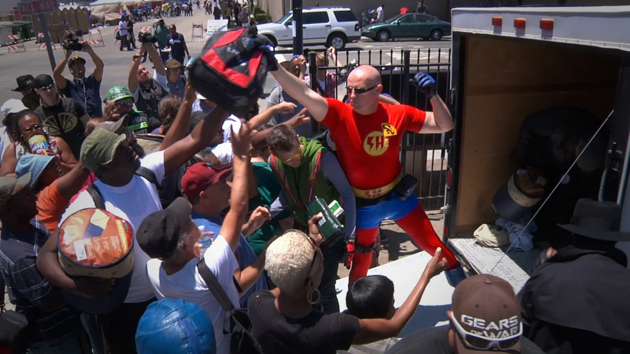 It turns out that over the years, the RLSH mission has become less and less about “crime fighting” and more about homeless outreach. Denise catches up with one of their supply handouts down in San Diego.
